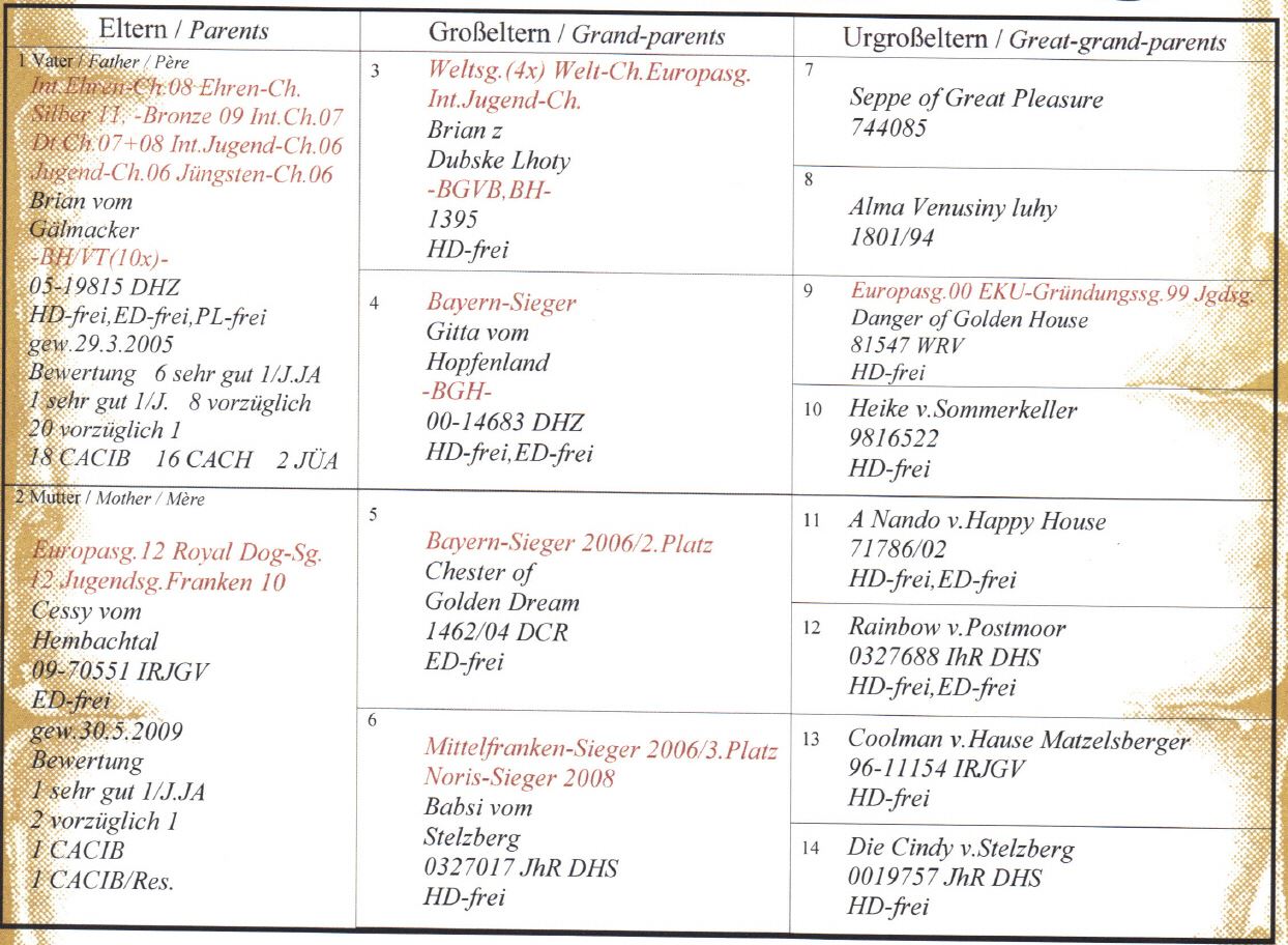 Der folgende Weblog soll der Familie ermöglichen über ihr Admin-Passwort Bilder und Kurztexte auf unserer Homepage einzustellen, um so die weitere Entwicklung unseres "Hembachtalers"zu dokumentieren.Wir die Züchter vom Hembachtal würden uns natürlich sehr freuen wenn wir ab und zu ein aktuelles Bildchen vorfinden würden, um weiterhin am Leben und der Entwicklung unserer Zöglinge teilhaben zu dürfen. (Achtung beim Passwort muß Groß- und Kleinschreibung berücksichtigt werden.)