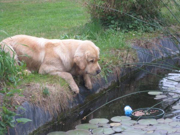 ..Verdammt, ist nicht meine Super-Blaue-Spielwurst in den Koiteich gefallen.....HILFE!!!